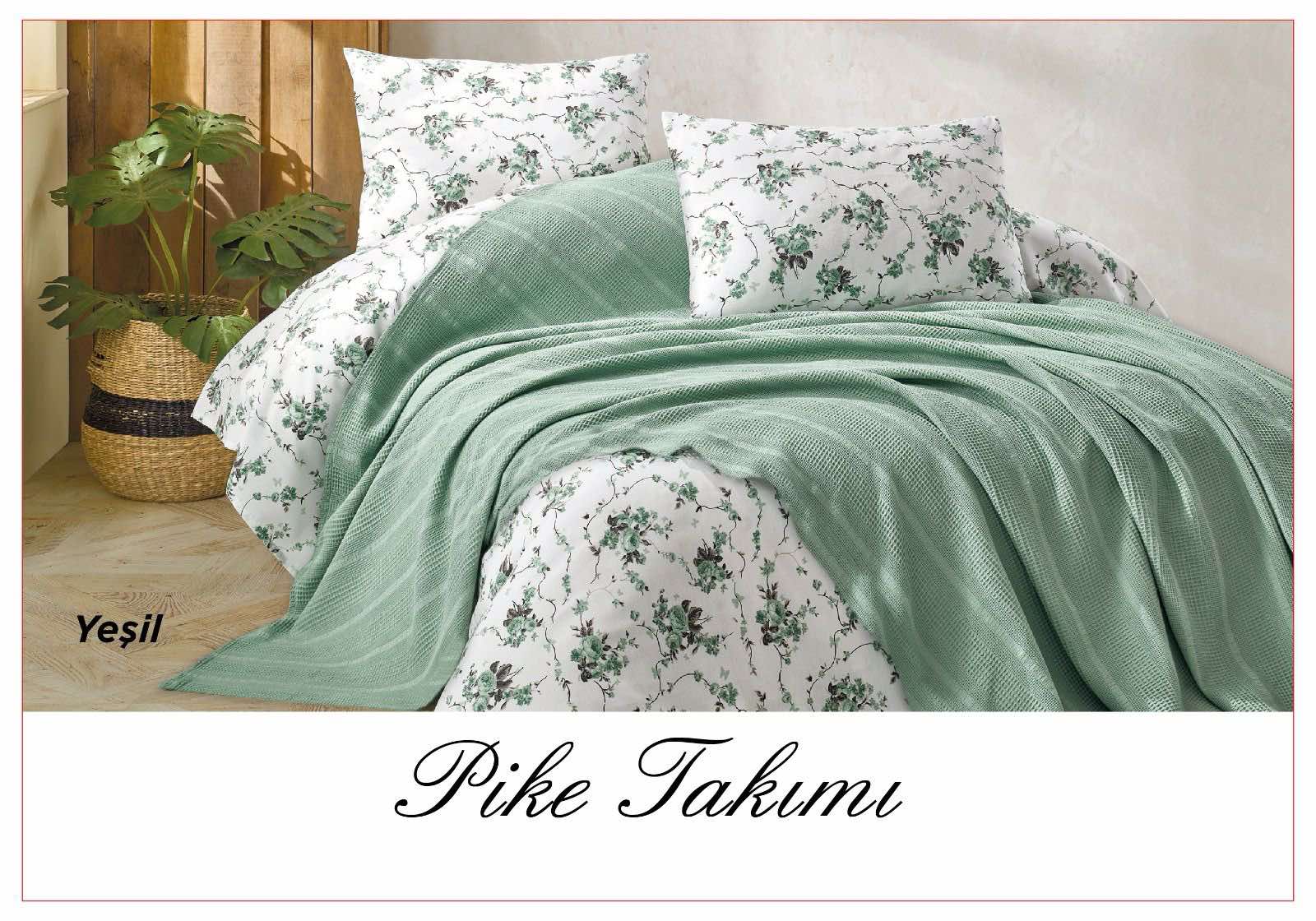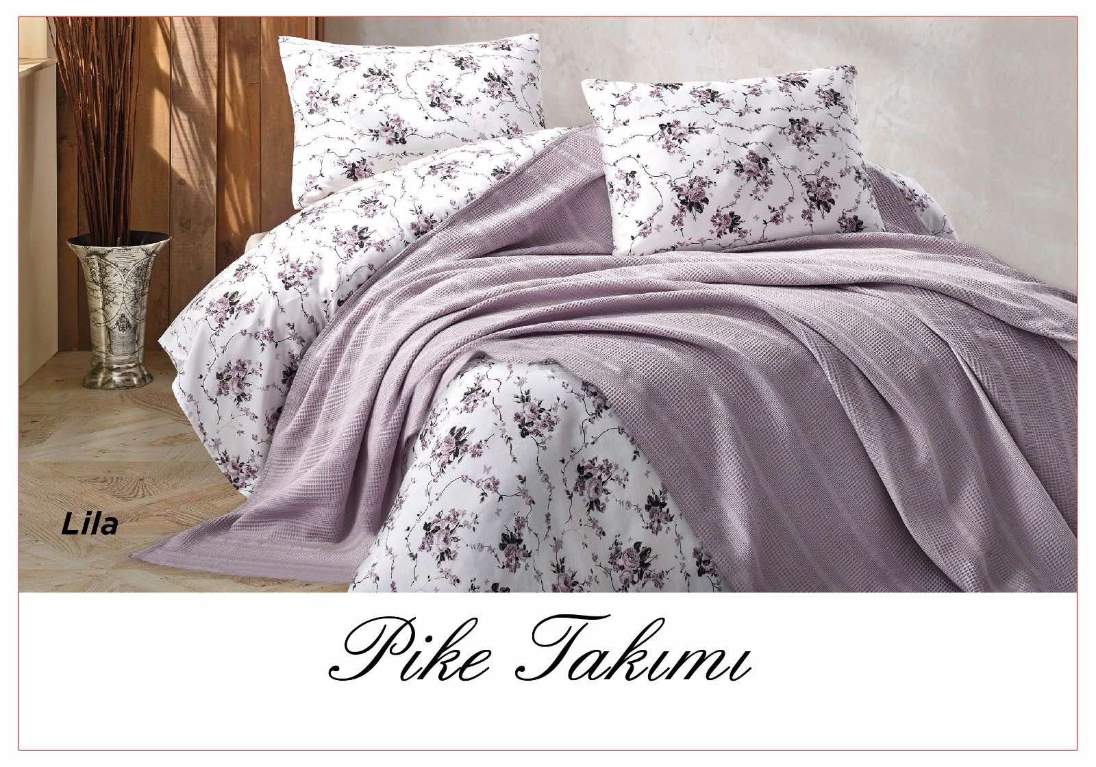 Дизайн постельного белья от турецкого бренда La Villa выполнен в приятном цветовом решении. Набор представлен в евро-размере и включает простыни и наволочки 50х70 в количестве 2 шт. Вместо пододеяльника имеется вафельное покрывало, которым будет очень удобно укрываться в летнее время года. При желании его можно использовать также как обычное покрывало, застилая им кровать или диван. На ощупь оно довольно приятное и напоминает плотную простыню.
