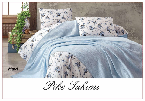Дизайн постельного белья от турецкого бренда La Villa выполнен в приятном цветовом решении. Набор представлен в евро-размере и включает простыни и наволочки 50х70 в количестве 2 шт. Вместо пододеяльника имеется вафельное покрывало, которым будет очень удобно укрываться в летнее время года. При желании его можно использовать также как обычное покрывало, застилая им кровать или диван. На ощупь оно довольно приятное и напоминает плотную простыню.