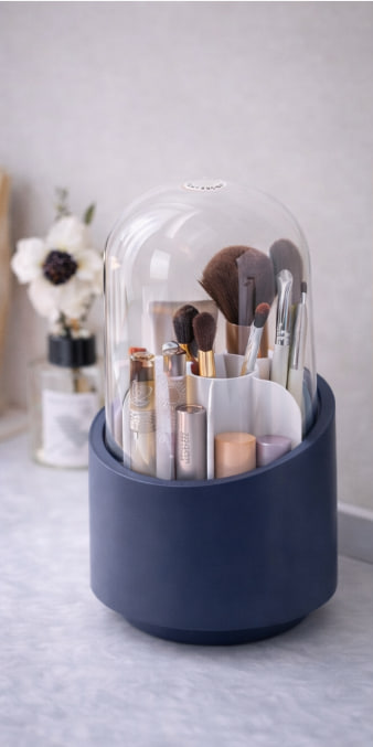 Вращающийся компактный органайзер идеально подходит для удобного хранения косметики, маникюрных принадлежностей, пыльцы, кистей. Он позволяет удобно вставлять и вынимать косметику благодаря его вращающейся конструкции на 360°.