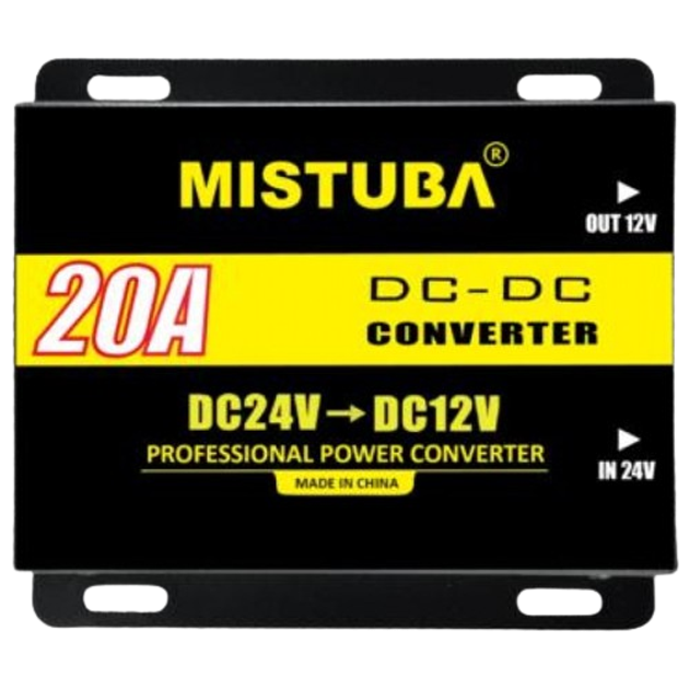 Прибор инвертора DC/24v DC-12v 20A предназначен для преобразования электричества 24В в 12В. Позволяет подключать погрузку до 120Вт. Например: видеокамеру, телефон, ноутбук, разную аудио- и видеотехнику и другие электроприборы и бытовую технику. Корпус изготовлен из металла, на задней части расположены провода для подключения, а также световой индикатор работы. Прибор рассчитан на выдачу до 10А. Область применения: в автомобиле, катере, солнечных и ветровых электрогенераторах, для аварийной работы и т.д.
