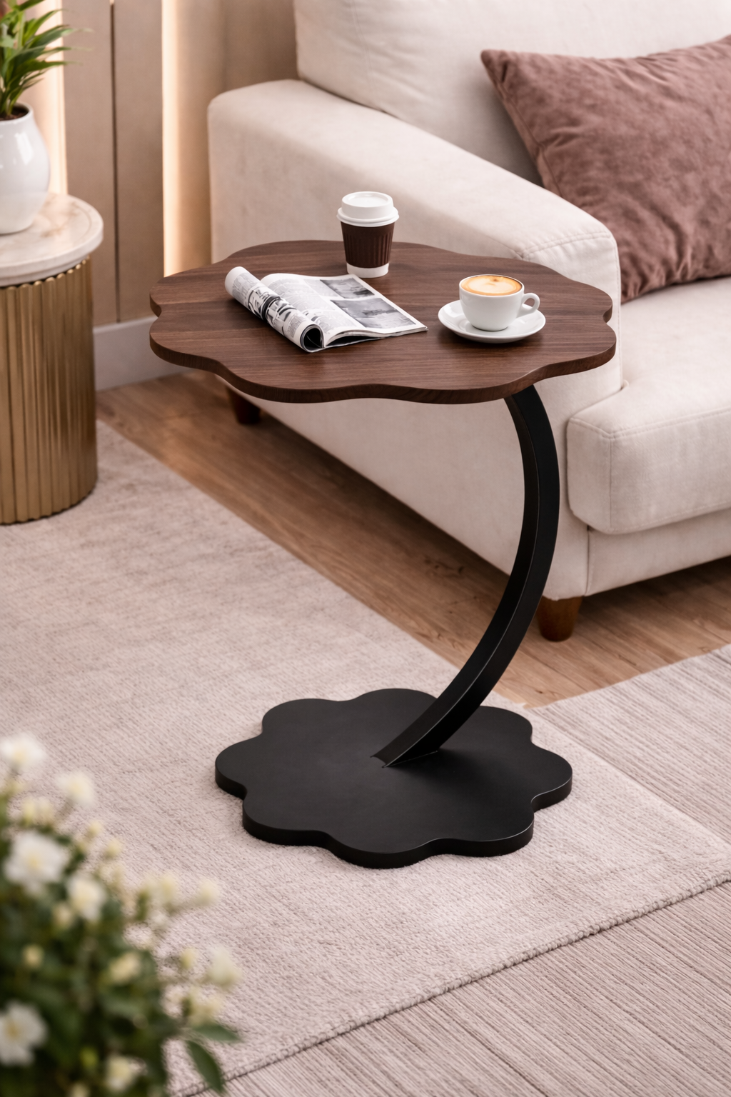 Кофейный столик станет изысканным и функциональным дополнением к любому современному интерьеру. Он идеально подходит как журнальный столик, столик в спальне или стильный элемент в гостиной или зоне отдыха. Его компактные размеры позволяют легко интегрировать его даже в небольшие пространства.