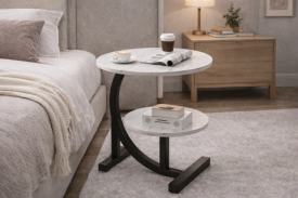 В спальне как столик для кроватей для книг, очков, часов или чашки кофе.