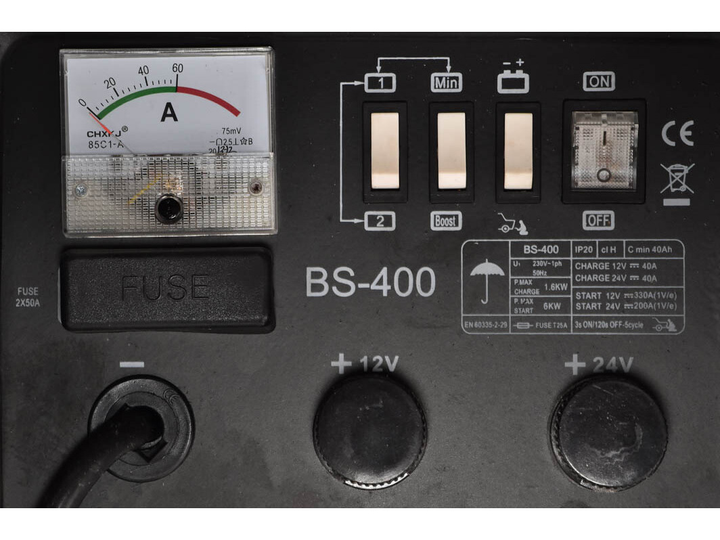 Пуско зарядное устройство для автомобильного аккумулятора 40А старт 400А АКБ 12-24V 1,6 кВт стрел. инд Organic Assistant BS-400