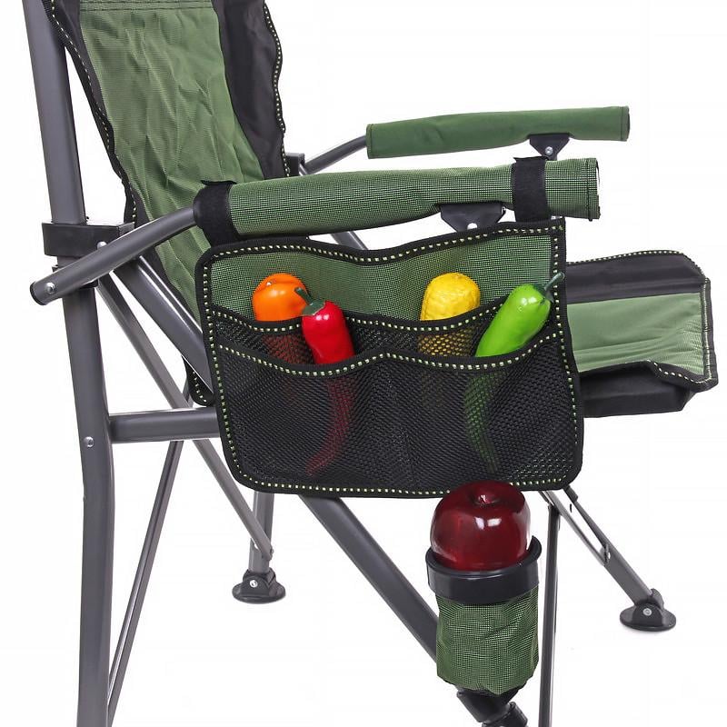 В комплекте с походным приспособлением предусмотрены боковые кармашки на перила, и форма под стакан или бутылку.