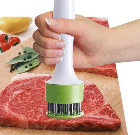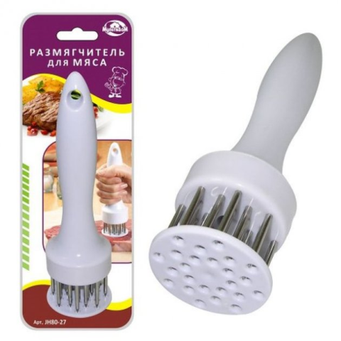- Важным достоинством тендерайзера является то, что разрыхленное с его помощью мясо, лучше сохраняет свои вкусовые качества, оставаясь при жарке мягким и сочным.