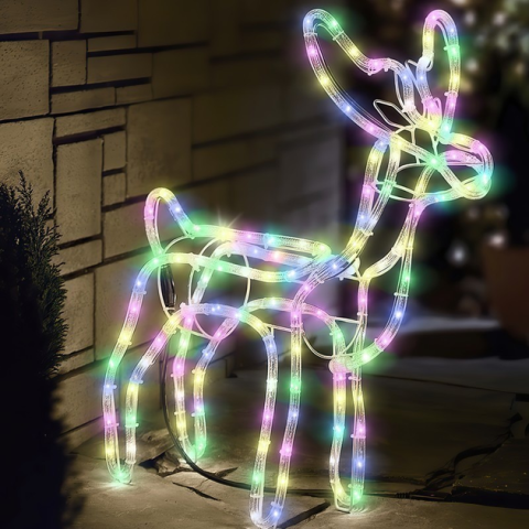 Разноцветный Уличный новогодний олень из дюралайта маленький 47 см от сети