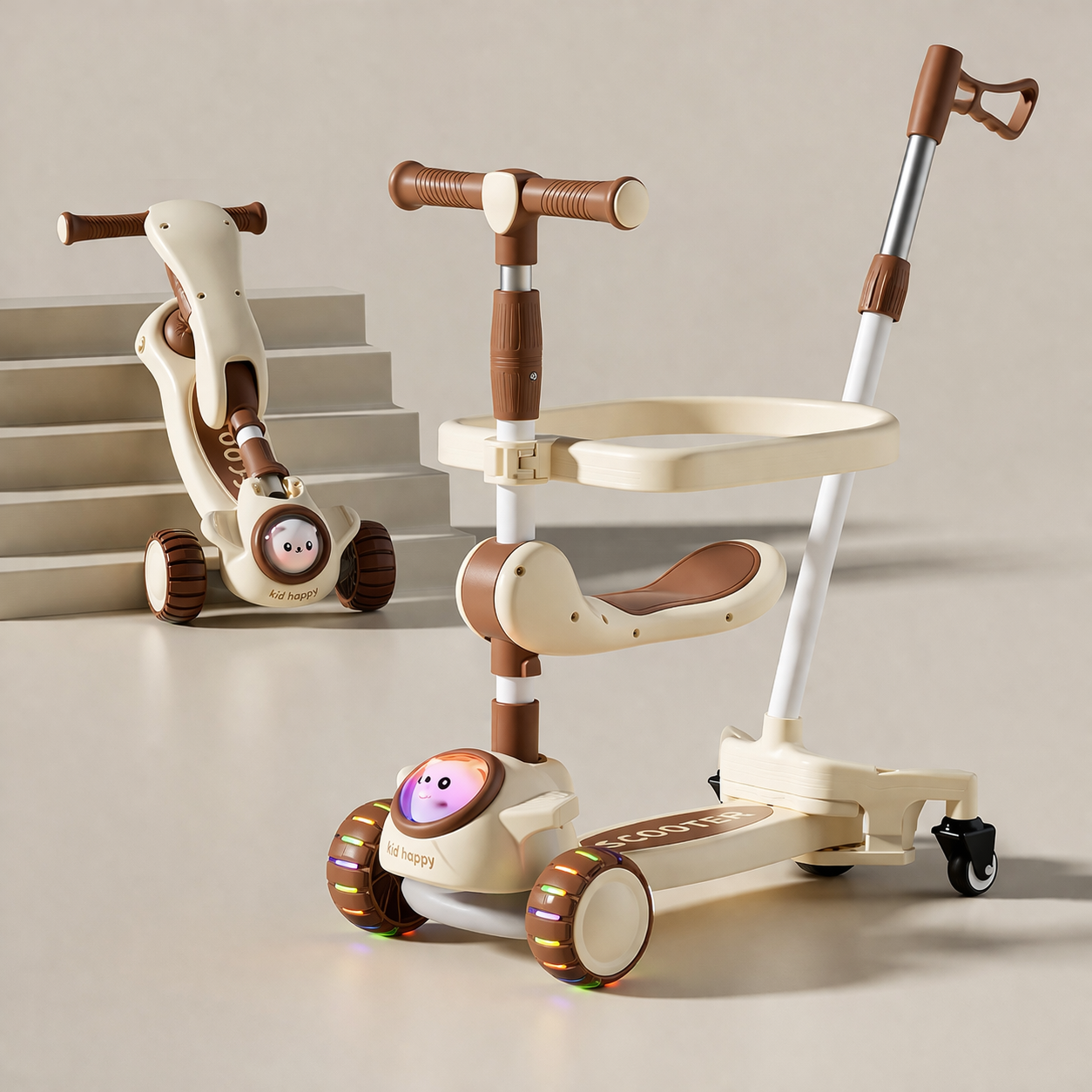Детский самокат 5 в 1 с сиденьем, бортиком и родительской ручкой