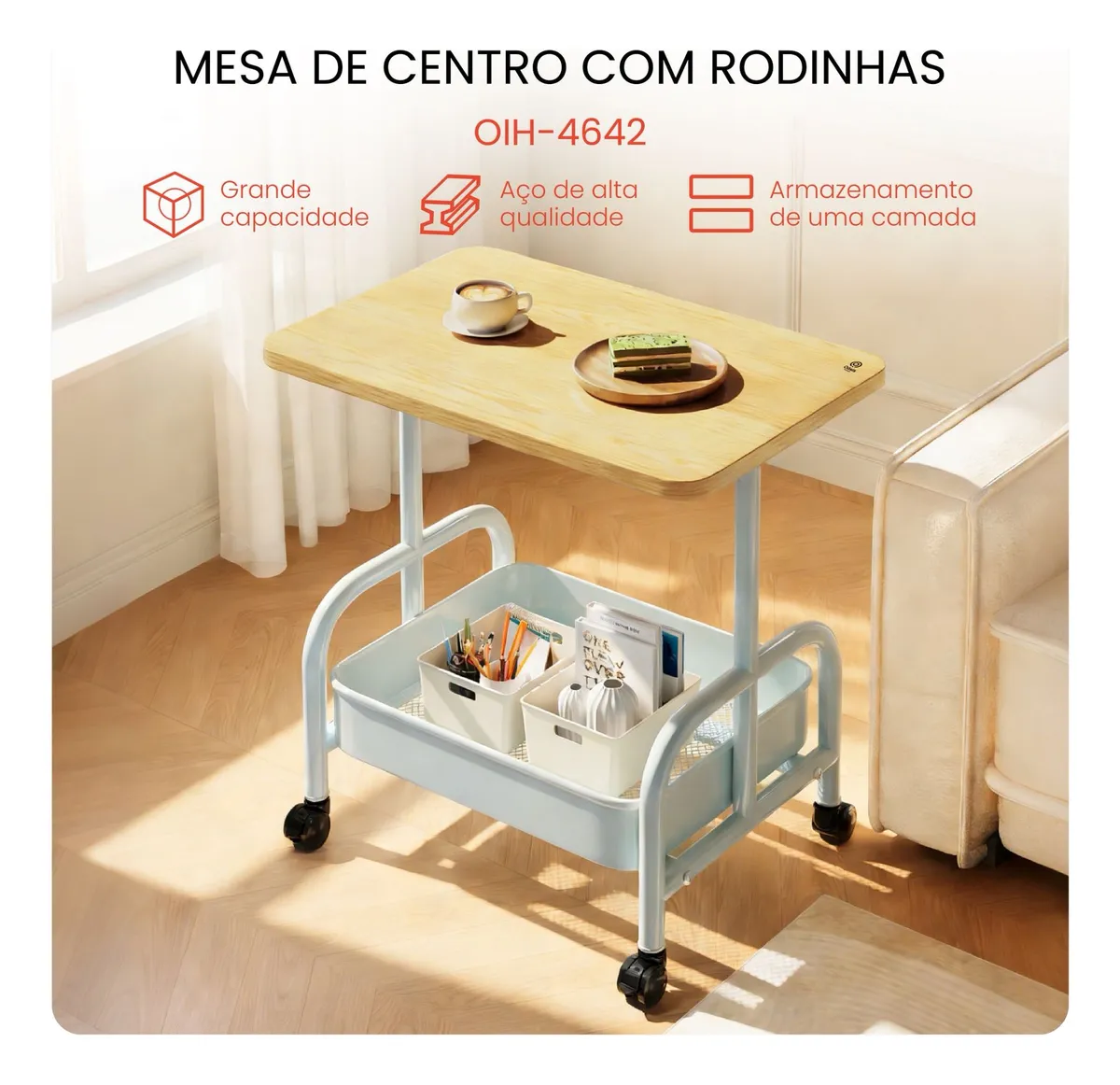 Этот передвижной столик легко перемещается, занимает минимум места и придает комфорт ежедневно.