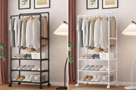 Стойка-вешалка на колесах для вещей и обуви (YH9918-1)