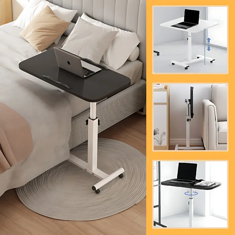 Стол прикроватный на колесах с цельной столешницей Черный – это функциональный и стильный аксессуар, который отлично подходит для использования в спальне или гостиной. Компактные размеры и возможность складывания делают его идеальным решением для экономии пространства, позволяя использовать столик даже в ограниченных условиях. Стол наддиванный на колёсиках с двойной столешницей – это удобное и функциональное решение для дома, идеально подходящее для работы с ноутбуком или приема пищи в постели. Благодаря регулируемой высоте и двум просторным столешницам столик можно легко настроить под индивидуальные потребности. Поворотный механизм столешницы обеспечивает гибкость использования, а колесики с фиксаторами позволяют без труда перемещать столик и надежно закреплять его на месте.