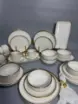 Набор включает в себя все необходимые элементы для сервировки стола: обеденные и десертные тарелки, глубокие пиалы, чайные пары и блюда для сервировки. Каждый предмет изготовлен из высококачественного белого фарфора, что обеспечивает долговечность и сохранение эстетичного вида на многие годы вперед.