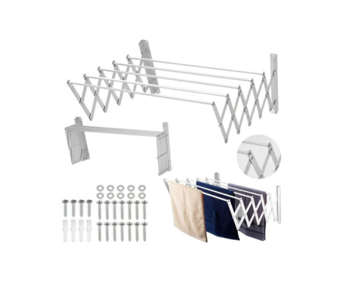 Сушилка для белья настенная раздвижная гармошка изготовлена из высококачественного металла, который хорошо противостоит механическим повреждениям, а также воздействию воды.