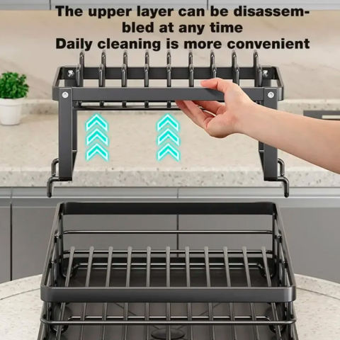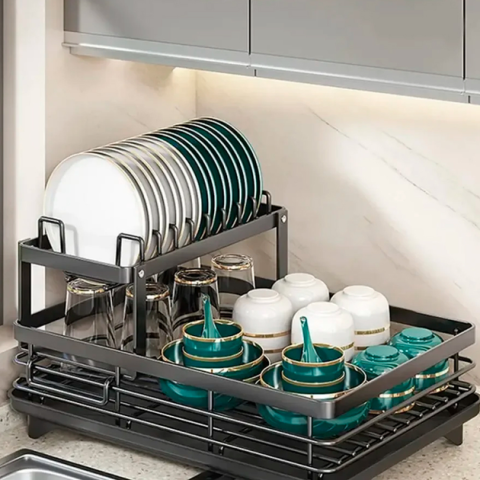 Сушилка для посуды двухуровневая с держателем для тарелок – это двухуровневая металлическая сушилка для посуды идеально подойдет для организации кухни.