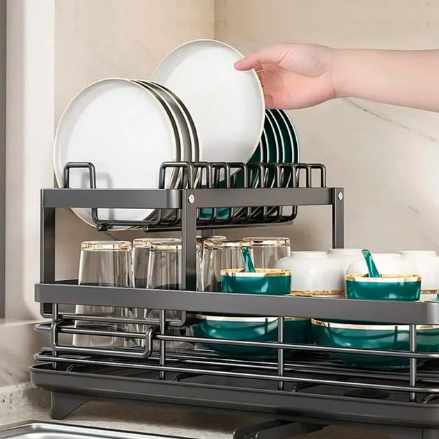 Сушилка для посуды двухуровневая с держателем для тарелок – 1 шт.