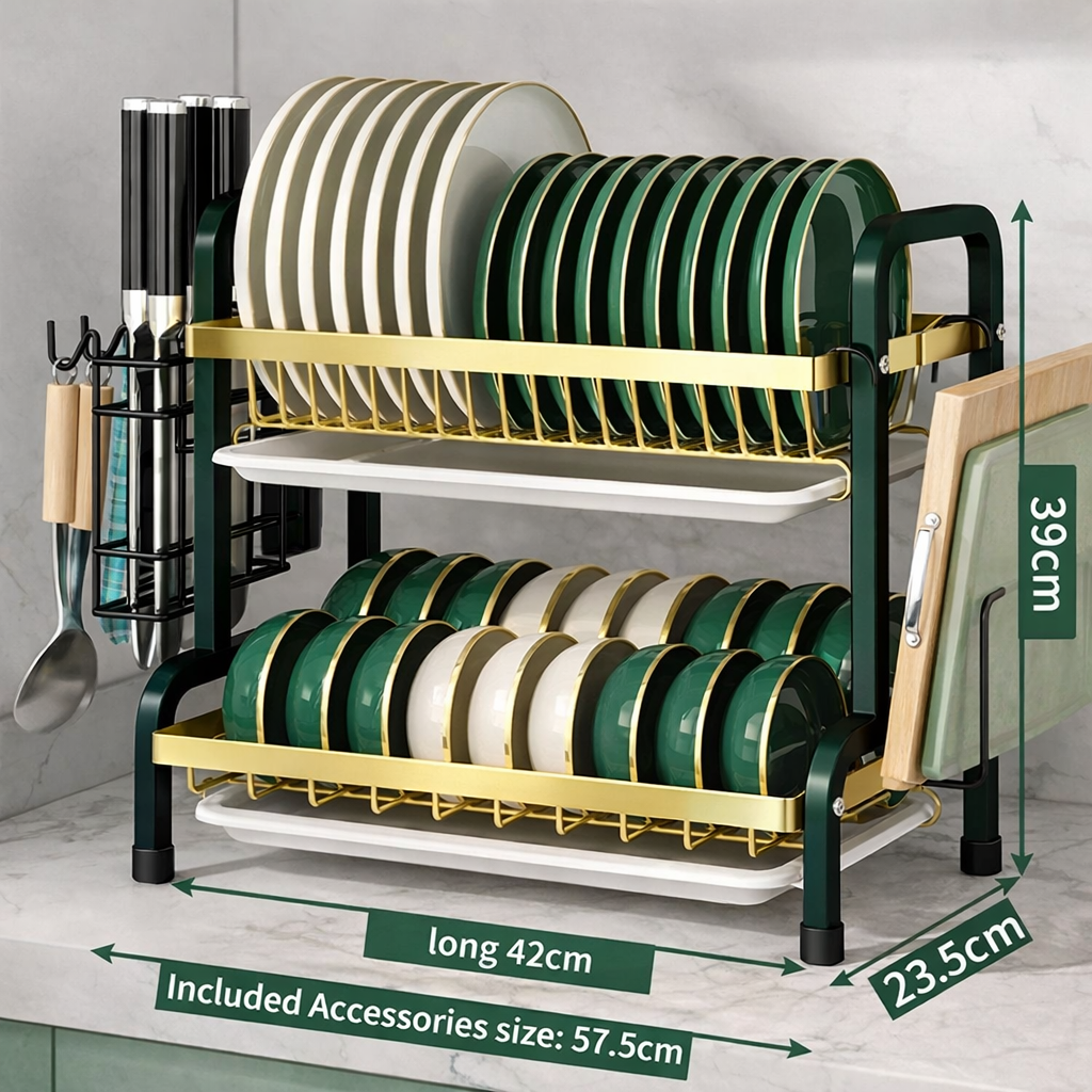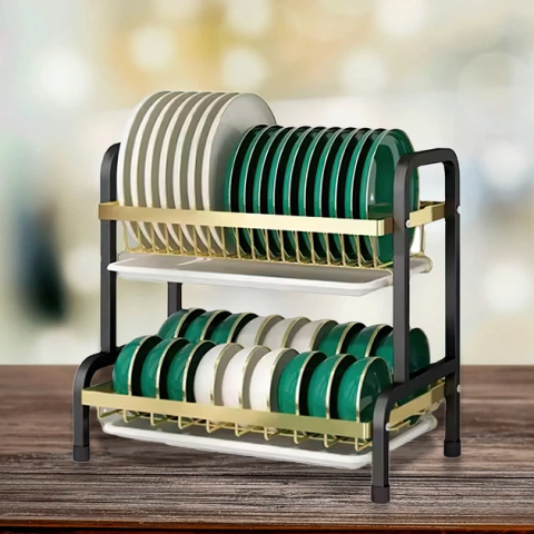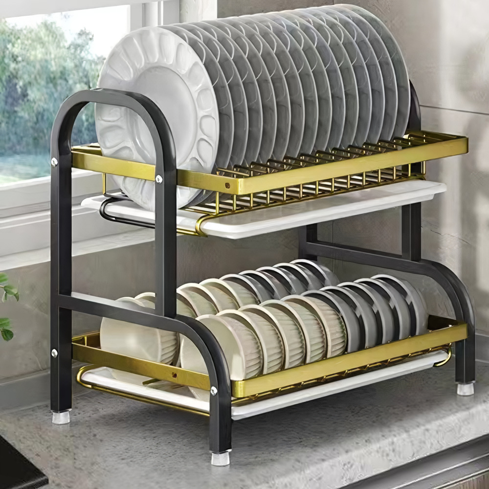Сушилка для посуды с поддоном / Органайзер на кухню для мытья посуды металл R2F-43см Черный с золотым