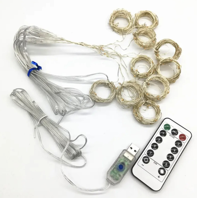 Гирлянда Капля росы штора 3х2м с пультом 200LED на медной проволоке - Новогодняя светодиодная от USB
