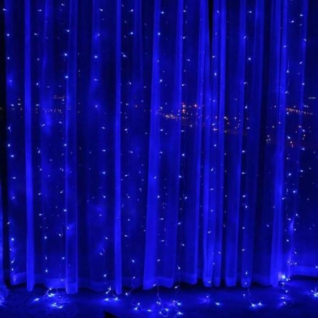 Светодиодная гирлянда штора роса на проволоке 3х2 м 200 LED пульт + USB Синий