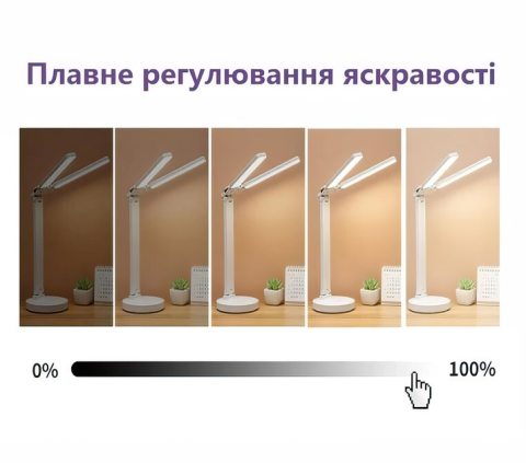 Настольный светильник имеет яркий ровный световой поток. Благодаря встроенному димеру его можно регулировать, изменяя уровень освещенности исходя из ваших потребностей. Эта функция полезна для выбора комфортного освещения для глаз и длительной работы за рабочим столом.