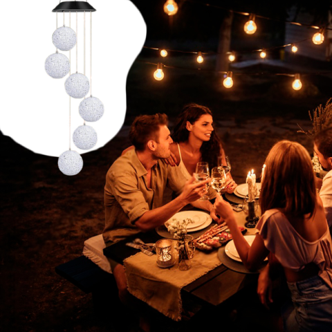 Водонепроницаемый дизайн: защищенный от дождя и влаги. Простота установки, не требующая внешнего электричества, безопасна даже для детей. Крепкие пластиковые пузыри, которые не выцветают, не меняют форму, не боятся льда и холода. Подвесные куранты на открытом воздухе украшают ваше патио, сад, газон и т.д.