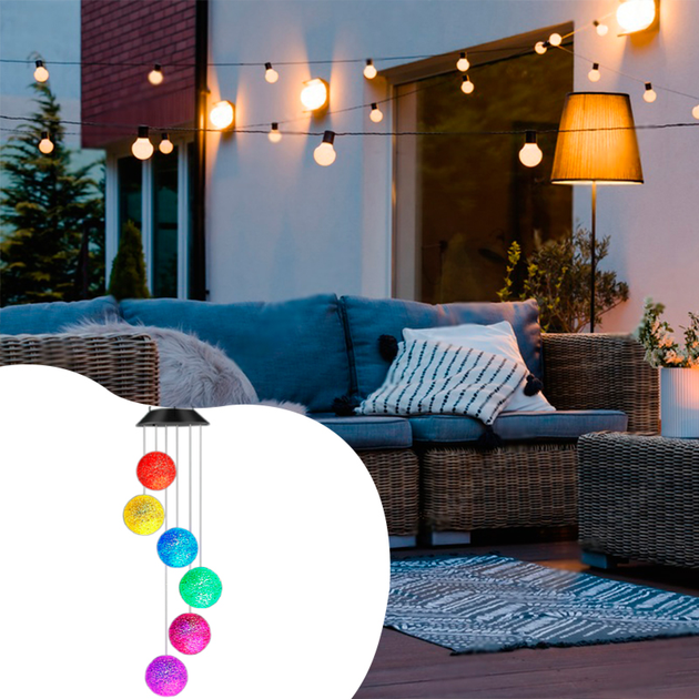 Садовая подвесная лампа с 6 LED шарами на солнечной батарее