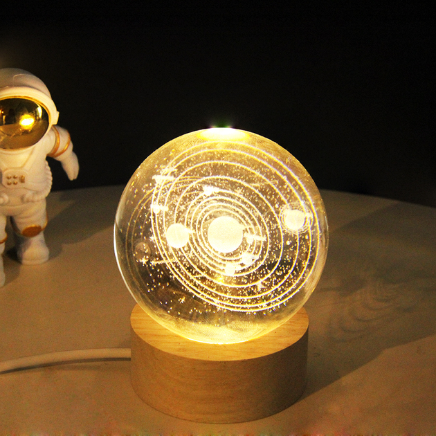 Светодиодный хрустальный шар, декоративный универсальный 3D ночник, хрустальный шар "Спутник"