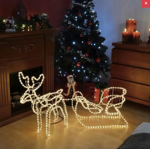 Теплый белый Уличный новогодний олень из дюралайта маленький с санями от сети