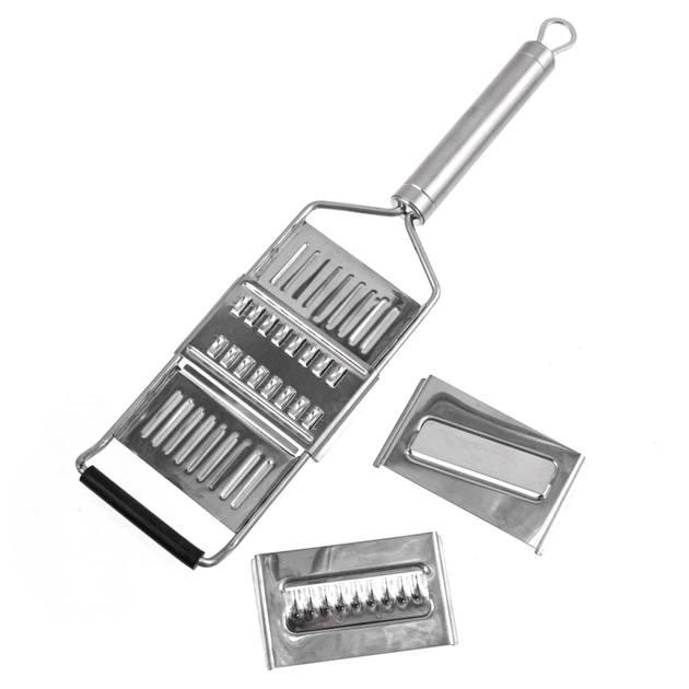 Має 3 робочі насадки з різними поверхнями: дрібними, середніми, великими отворами, та ніж для шатківниці. Поверхня з дрібними отворами знадобиться для натирання картоплі чи цедри. Середні та великі використовуються для натирання овочів. Шинковка призначена для капусти та нарізки картоплі тонкими кружальцями.
