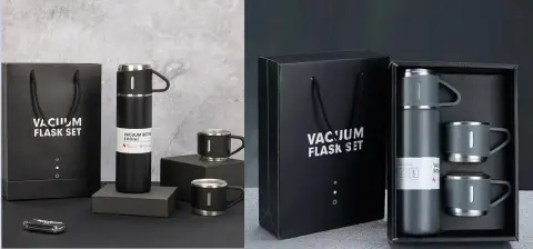 Подарочный набор термос и кружки является отличным выбором и отлично подойдет в качестве подарка, поскольку он не только смотрится приятно, но и упакован в изящную черную коробку.