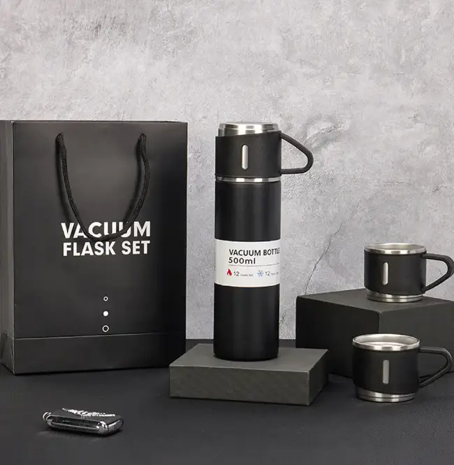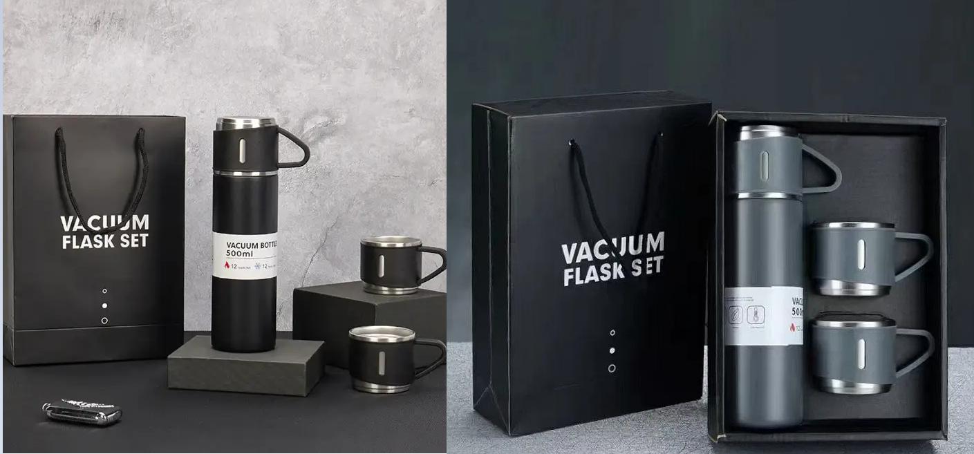 Термос с вакуумной изоляцией, Подарочный набор с 3 чашкам 500 мл