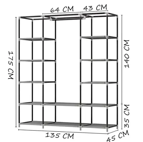 Тканевой шкаф HCX Storage Wardrobe 88130 станет для вас незаменимым помощником. С его помощью ваши вещи всегда будут в порядке и безопасности. Модель отлично подойдет для тех, кому нужен вместительный шкаф, но при этом они хотели бы сэкономить деньги. Данная модель имеет большое количество преимуществ.