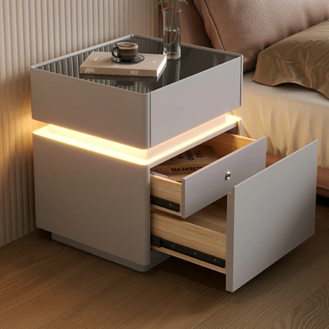 Современная многофункциональная прикроватная тумба — это не просто мебель, а полноценный технологичный центр комфорта в вашей спальне.Элегантная отделка из экокожи придаёт интерьеру премиальный вид, а встроенная LED-подсветка создаёт мягкую атмосферу уюта в вечернее время.