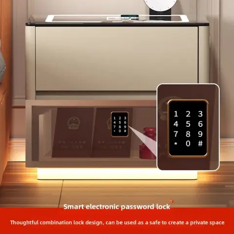 Современная многофункциональная прикроватная тумба — это не просто мебель, а полноценный технологичный центр комфорта в вашей спальне.Элегантная отделка из экокожи придаёт интерьеру премиальный вид, а встроенная LED-подсветка создаёт мягкую атмосферу уюта в вечернее время.