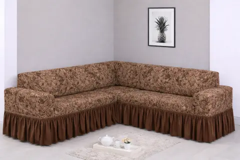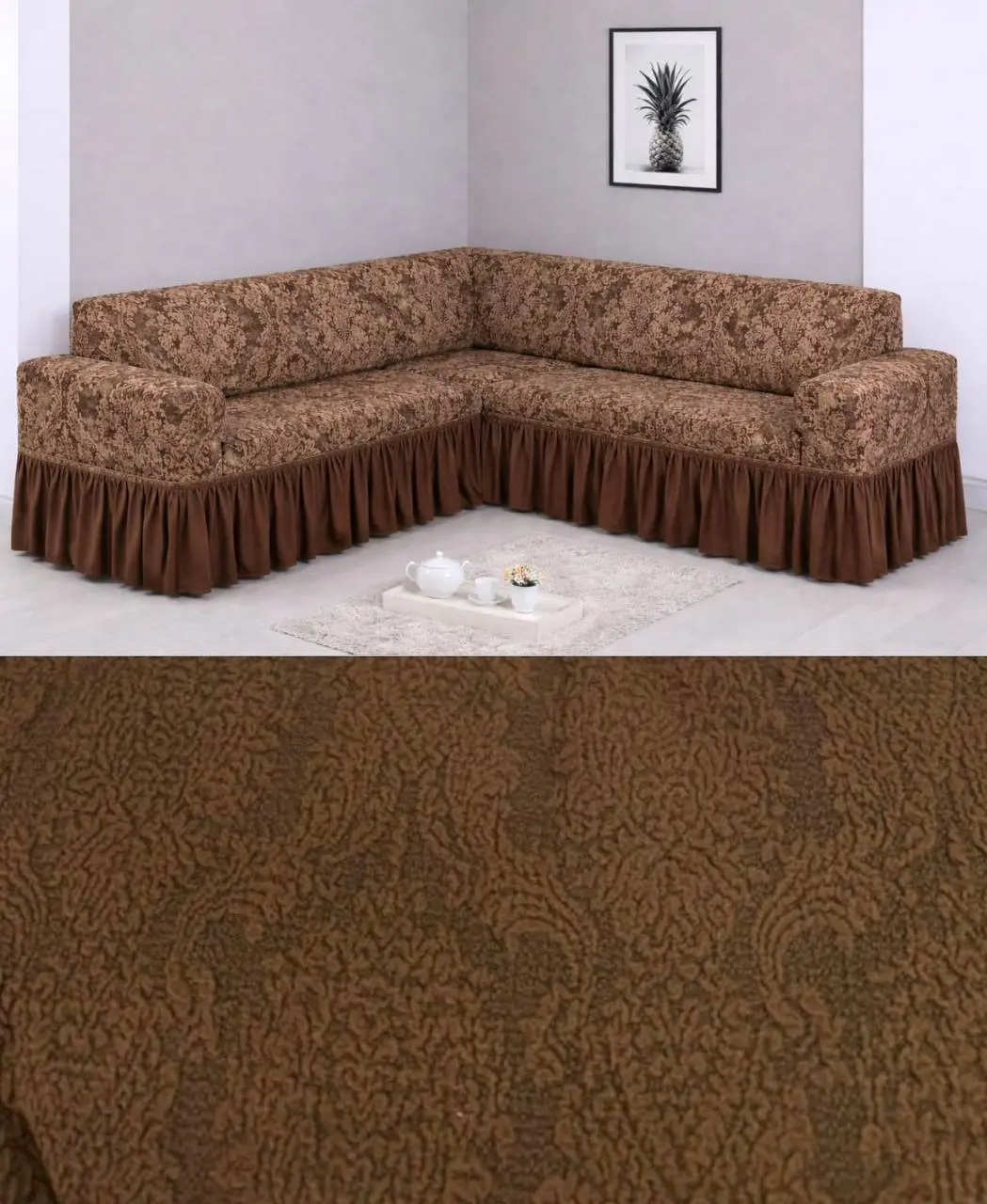Угловой жаккардовый чехол на диван, универсальный натяжной чехол, накидка на диван Коричневый