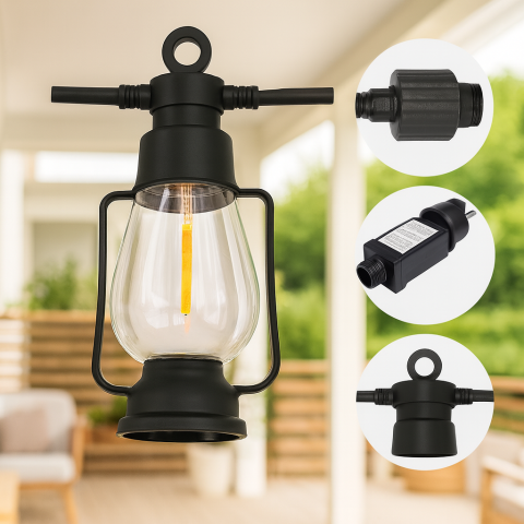 Создайте уютную атмосферу с уличной гирляндой «Лампы подвесные» SFK-49 – стильным и практичным решением для оформления террас, кафе, беседок и фасадов домов.