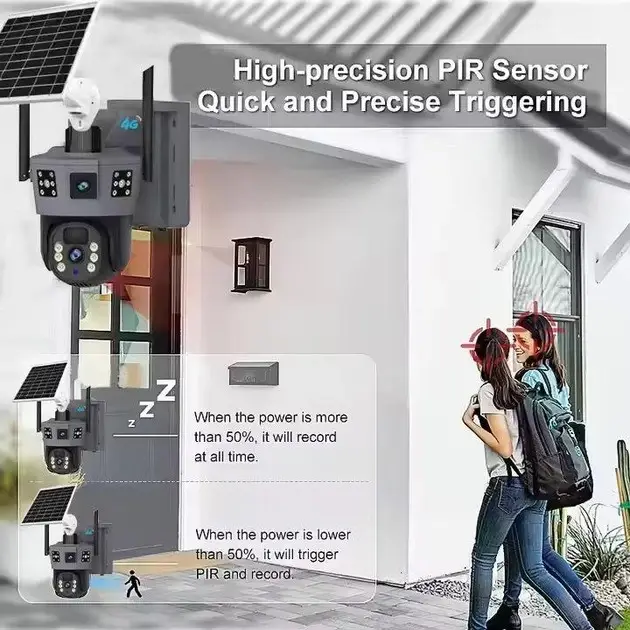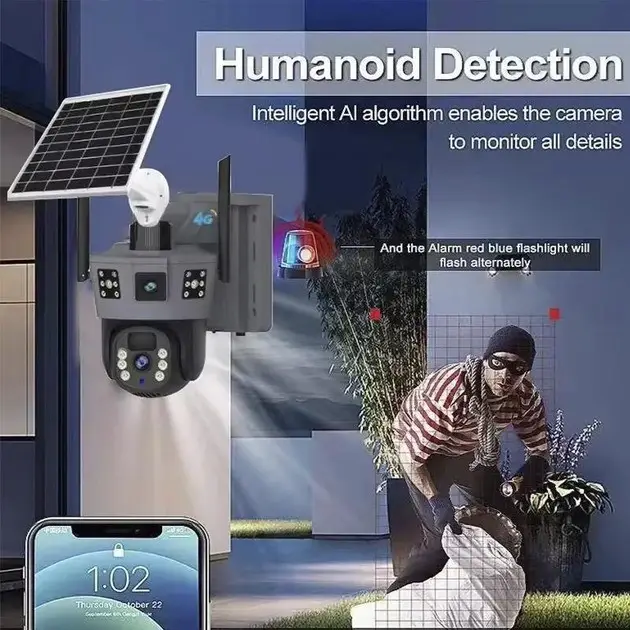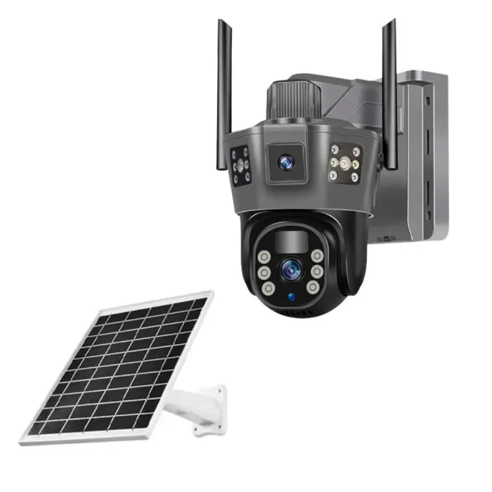 Уличная WiFi камера видеонаблюдения с солнечной панелью и двумя объективами TP18 Камера видеонаблюдения 6Мп