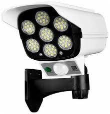 Уличная камера муляж светильник с датчиком движения Solar Monitoring Lamp с дистанционным управлением очень удобное и экономичное приспособление. Встроенный датчик движения автоматически срабатывает при обнаружении движения на расстоянии от 3 до 5 метров. Беспроводной светильник муляж 2 в 1 идеально подходит для дачи, сада, двора, крыльца или подъездной дорожки. Вам не придется проводить электричество, камера муляж заряжается от солнечных батарей. Просто зафиксируйте устройство в подходящем месте и он готов к использованию. Уличный светильник работает от солнечных батарей в течение 8 часов.
