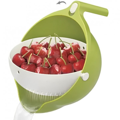 Миска и дуршлаг в одном! Экономит место на кухне и время на мытье овощей. Просто положите овощи в миску, промойте, затем воду слейте из миски. Миска-дуршлаг Mesh strainer drain basket – представляет собой друшлаг с миской для слива воды. Приспособление очень удобно в применении. Необходимо всего лишь отодвинуть заслонку и миска модифицируется в дуршлаг и Вы с легкостью сможете помыть фрукты или овощи. Просто положите необходимые продукты, промойте и слейте воду из миски. Продукты останутся в верхней части без воды. Фиксация подвижной части лоханки-дуршлага происходит с помощью ползунка на ручке.
