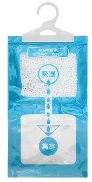 Представляет собой небольшой пластиковый мешочек, разделенный на два яруса. В верхней части расположены влагопоглощающие гранулы, состоящие из активных кристаллов и активированного угля. Нижний ярус пакета полый (пустой). Гранулы впитывают влагу из воздуха и набухают. Когда накопившаяся влага будет переизбыточной, вода станет постепенно стекать в резервуар, расположенный в нижней части мешочка.