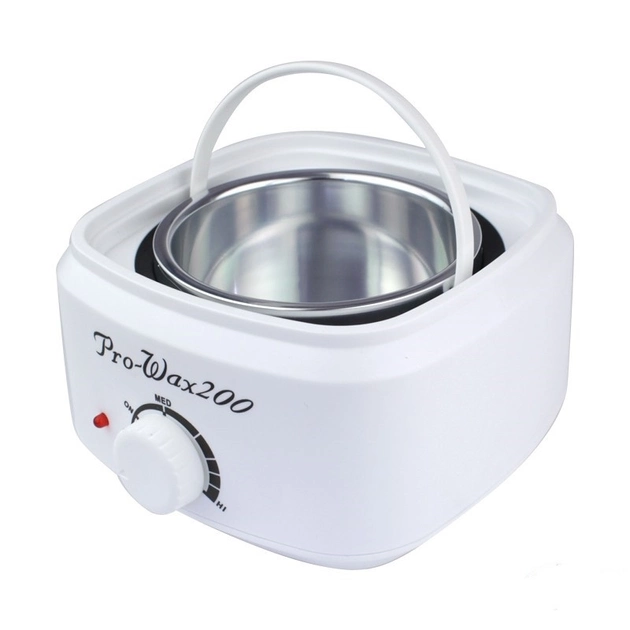 Воскоплав Pro-wax 200 - небольшой компактный электроприбор, с помощью которого выполняется процесс разогревания воска до жидкой, удобной для работы, консистенции и необходимой температуры. Данная модель универсальна, так как позволяет работать с материалом любого типа - в гранулах, таблетках, банках. Корпус воскоплава и крышка пластиковые, обе емкости (стационарная и съемная с пластиковой ручкой) выполнены из термостойкого металла. Управление работой прибора осуществляется с помощью округлого регулятора, поворачивая который, можно включать/выключать прибор и регулировать температуру. Наличие индикатора нагрева позволяет отслеживать процесс набора температуры (при включении он загорается красным, при выходе на заданный температурный режим гаснет, при снижении температуры загорается вновь). Воскоплав оснащен функцией поддержания постоянной температуры, поэтому мастеру не придется волноваться об остывании или перегревании воска, что очень удобно на потоковых процессах.