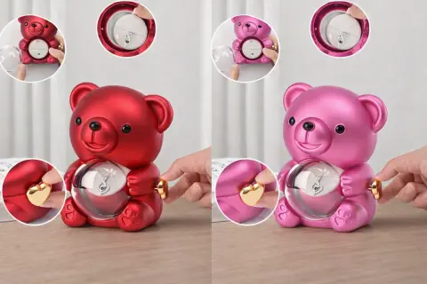 Вращающаяся шкатулка-медведь с розой в колбе