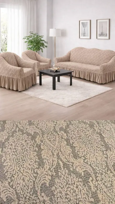 Жаккардовый натяжной чехол на диван и два кресла