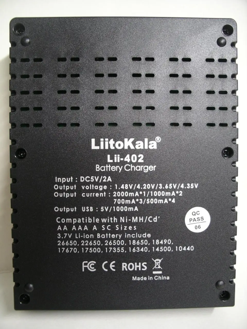*Рекомендуется использовать для питания LiitoKala Engineer Lii-402 зарядное устройство с выходным током не менее 2А.