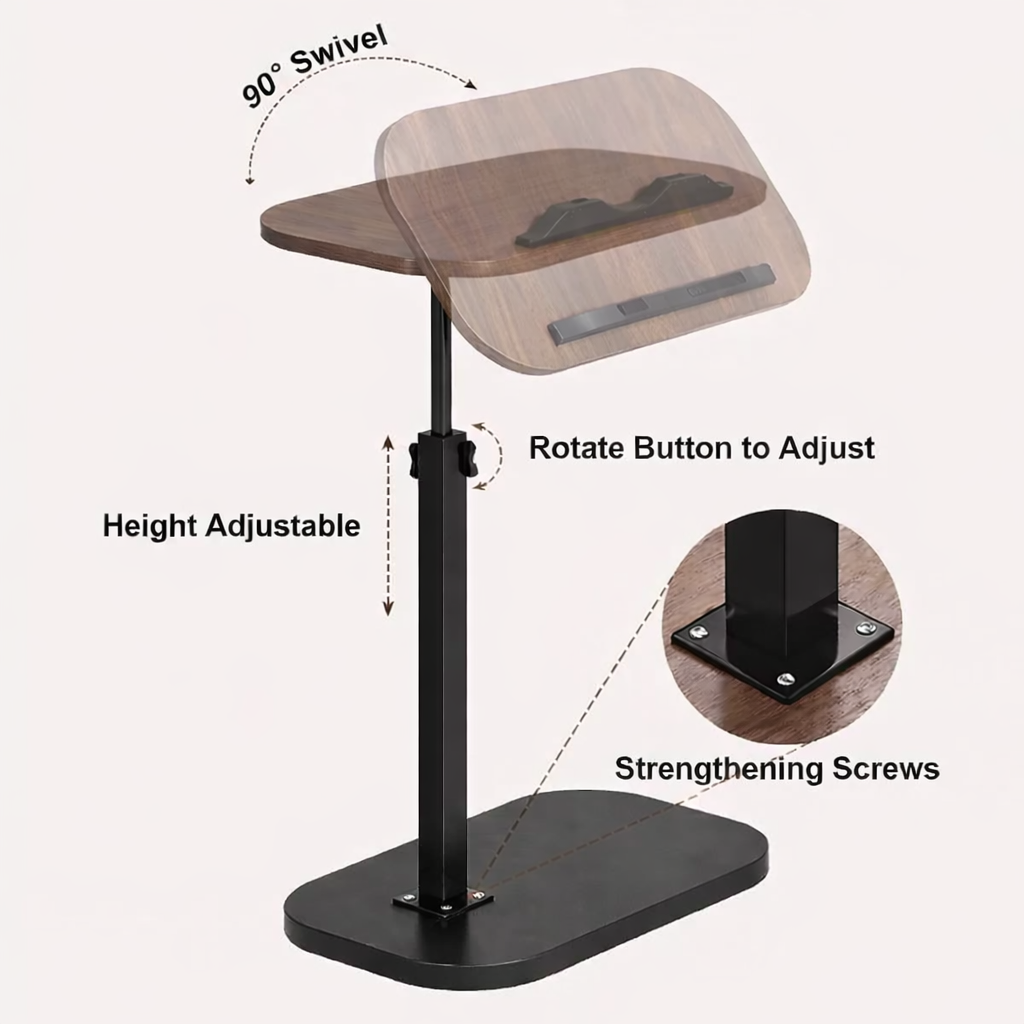 Журнальный столик с регулировкой высоты и оборотом 360° с наклоном