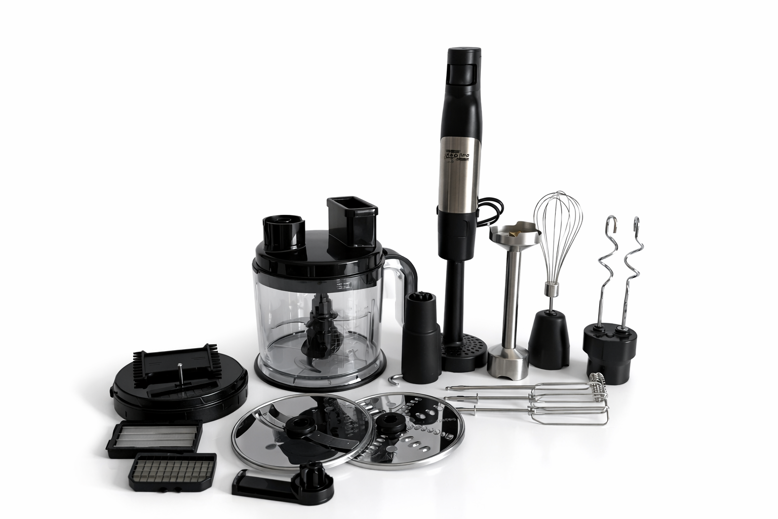 Ручний блендер Zepline ZP-00347 призначений для виконання різних кухонних завдань, пов'язаних із подрібненням, змішуванням, збиванням та обробкою продуктів. Пристрій підходить для приготування соусів, пюре, тіста, напоїв, а також для різання інгредієнтів різними способами. Завдяки функціональній комплектації блендер може використовуватись як універсальний кухонний інструмент.
