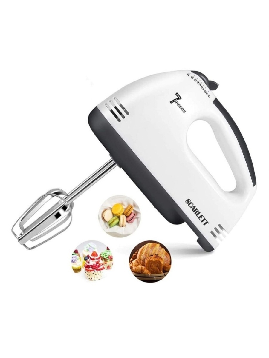 Міксер Scarlett HE-133 має безліч переваг: лаконічний дизайн, невелика вага, ергономічна ручка. Завдяки 7 швидкостям роботи, перемикати які зручно прямо в процесі роботи, легко довести будь-які інгредієнти до потрібної консистенції. Спеціальні насадки-гаки замішують тісто для кексів, пиріжків чи піци. Віночки для збивання впораються із приготуванням повітряного картопляного пюре, рідкого тіста для млинців.