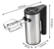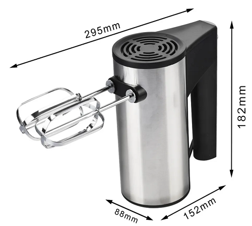 Міксер має 5 режимів швидкостей. Також є режим «Турбо», що збиває дуже швидко. Для зручності виконання різних функцій є 2 види насадок – віночки для збивання та гаки для тесту. Змінити їх можна простим натисканням кнопки.