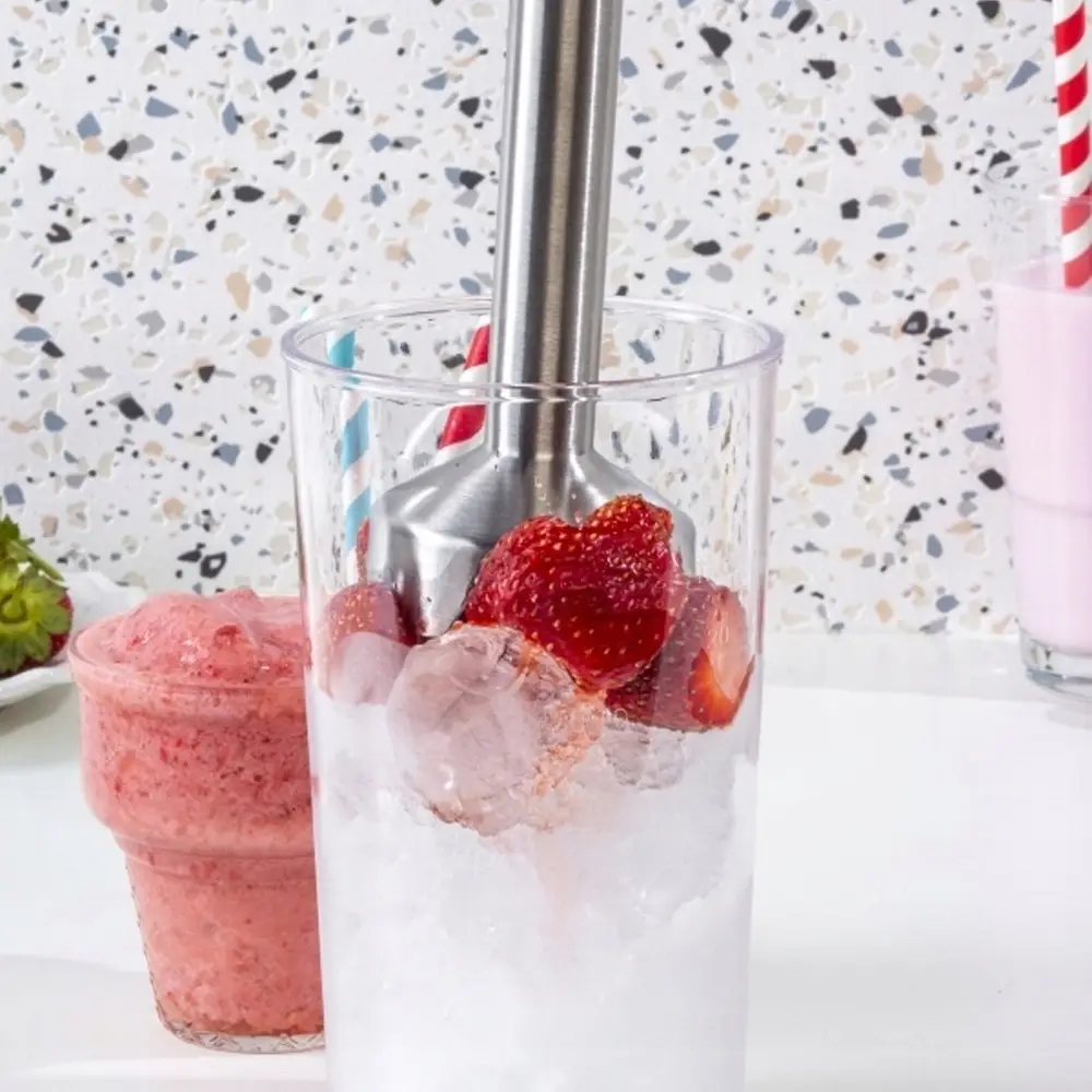 Блендер оснащений двома швидкісними режимами, що дозволяють контролювати процес приготування та досягати бажаної консистенції залежно від страви. Міцна металева ніжка гарантує довговічність пристрою та дозволяє використовувати блендер для гарячих страв, таких як супи-пюре, не ризикуючи пошкодити пристрій. Знімні частини легко миються, що значно полегшує догляд за пристроєм.