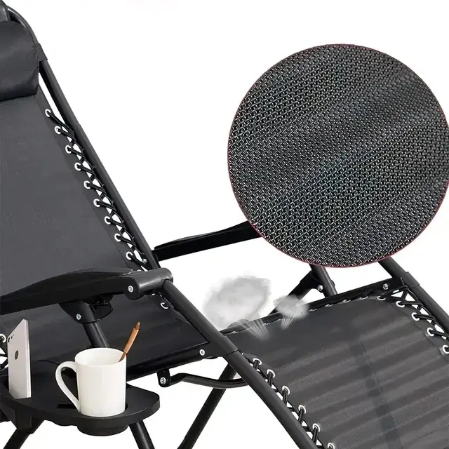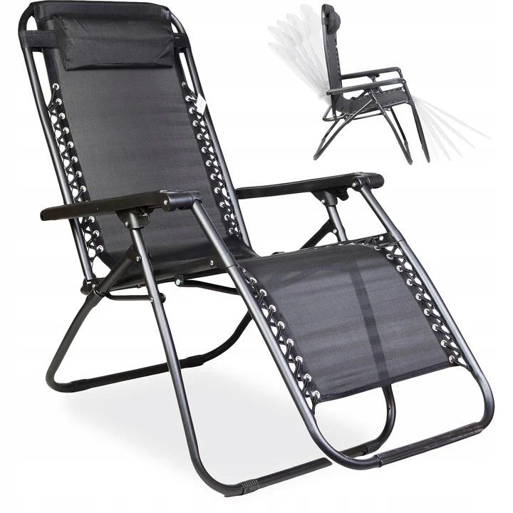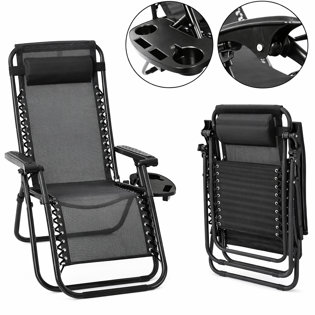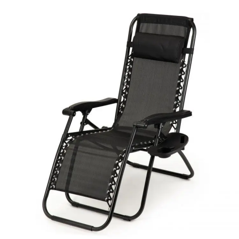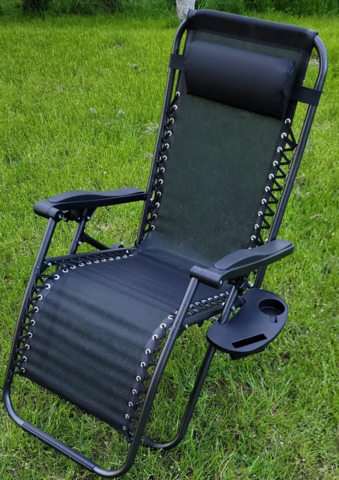 чорний Садове Крісло Шезлонг до 120 кг Складаний Шезлонг для Дачі Zero Gravity XXL (з підстакаником)