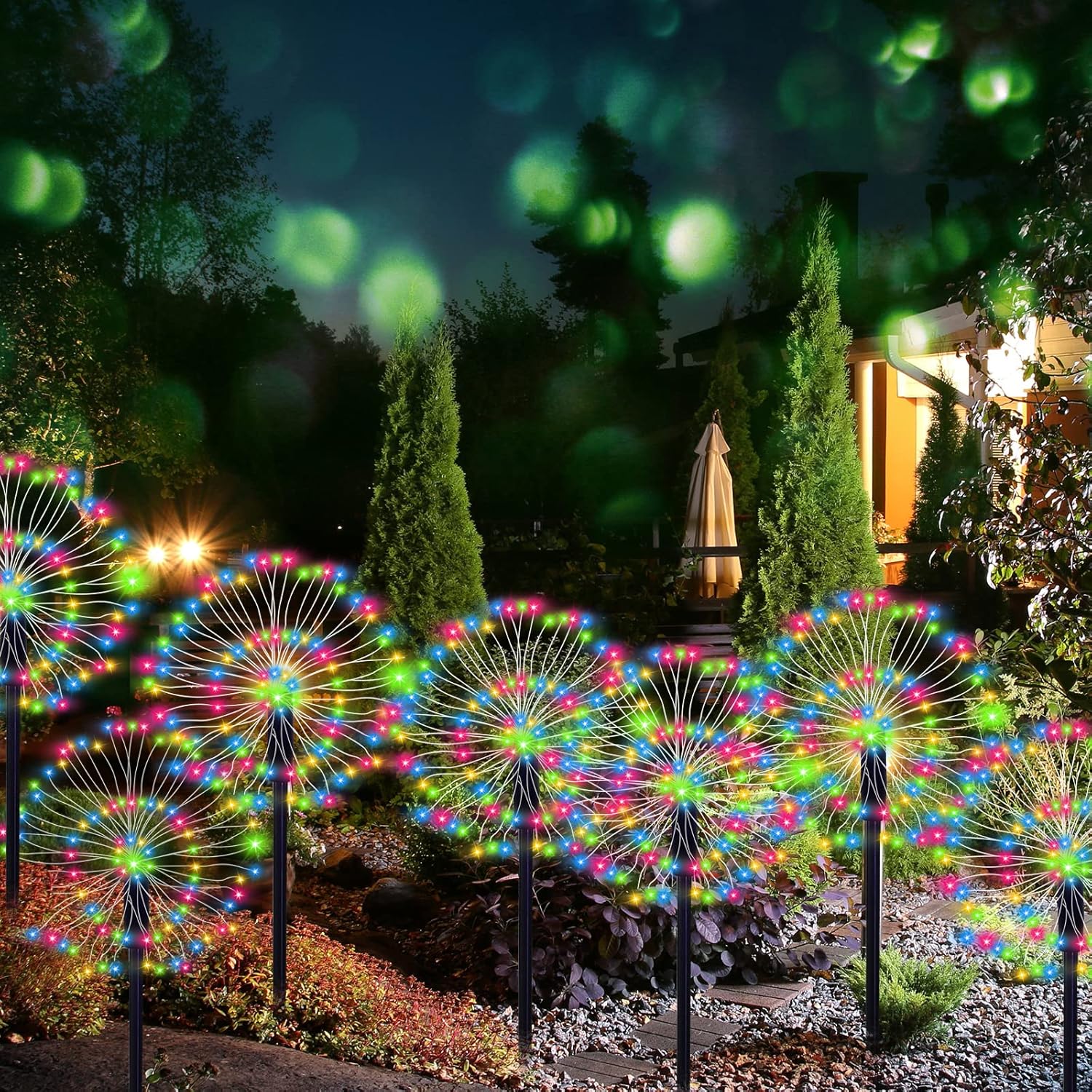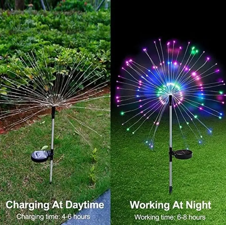 Модернізований сонячний ліхтар: дизайн форми, що поєднує у собі феєрверк або красиве коралове дерево, покликаний створити унікальну та креативну прикрасу із сонячного світла на ринку. Ці вуличні сонячні світильники для двору виглядають яскравіше та привабливіше, ніж звичайні одношарові світильники-медузи. Зовнішні сонячні ліхтарі ідеально підходять для оформлення доріжок, дворів, клумби, під'їзних доріг, газонів, доріжок, патіо прикрашених на задньому дворі.