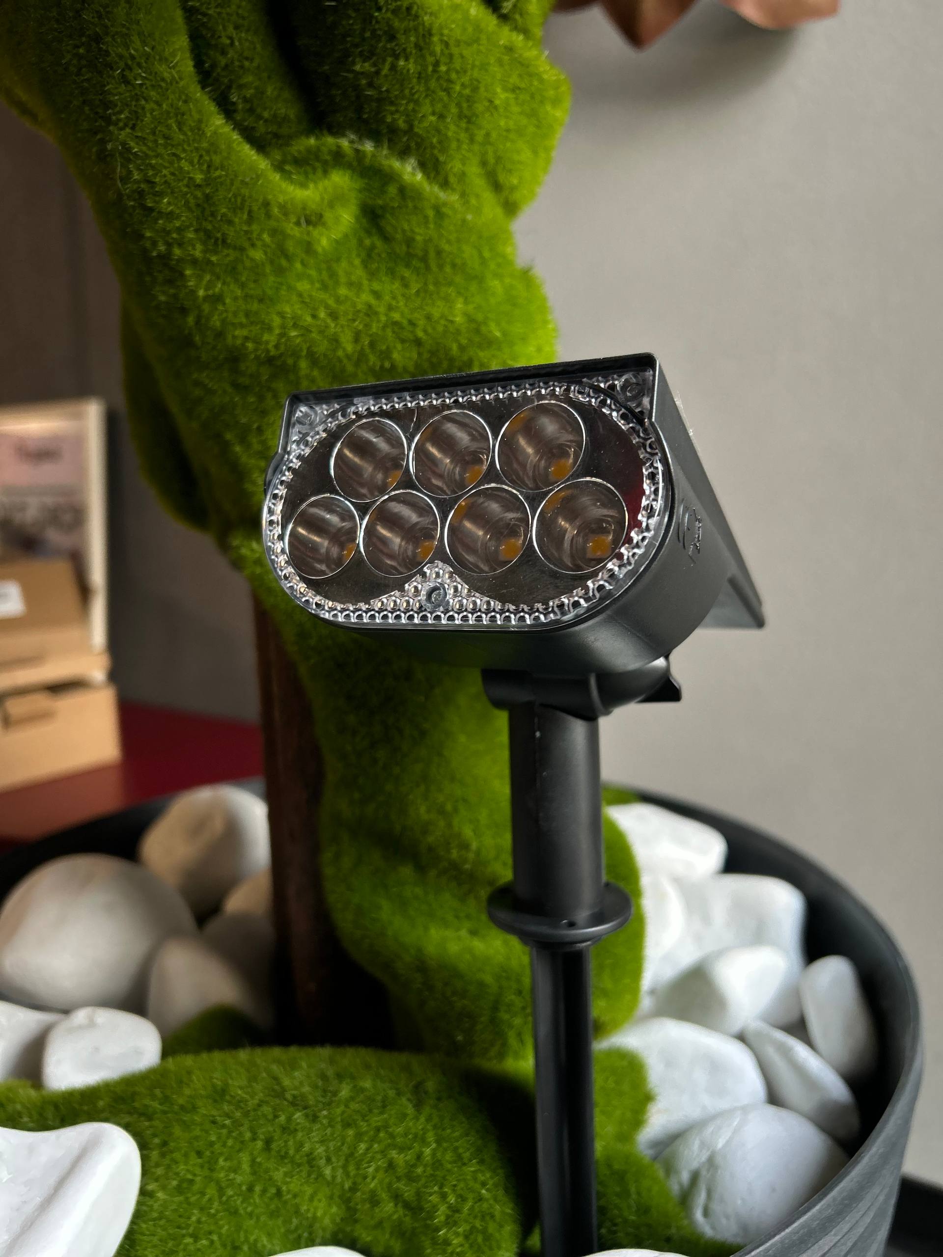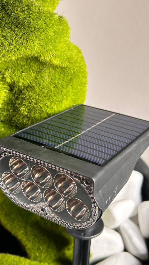 Стильний вуличний прожектор для декоративного підсвічування саду, газону, дерев та фасаду будинку. Працює повністю автономно від сонячної енергії без проводів і додаткових витрат.